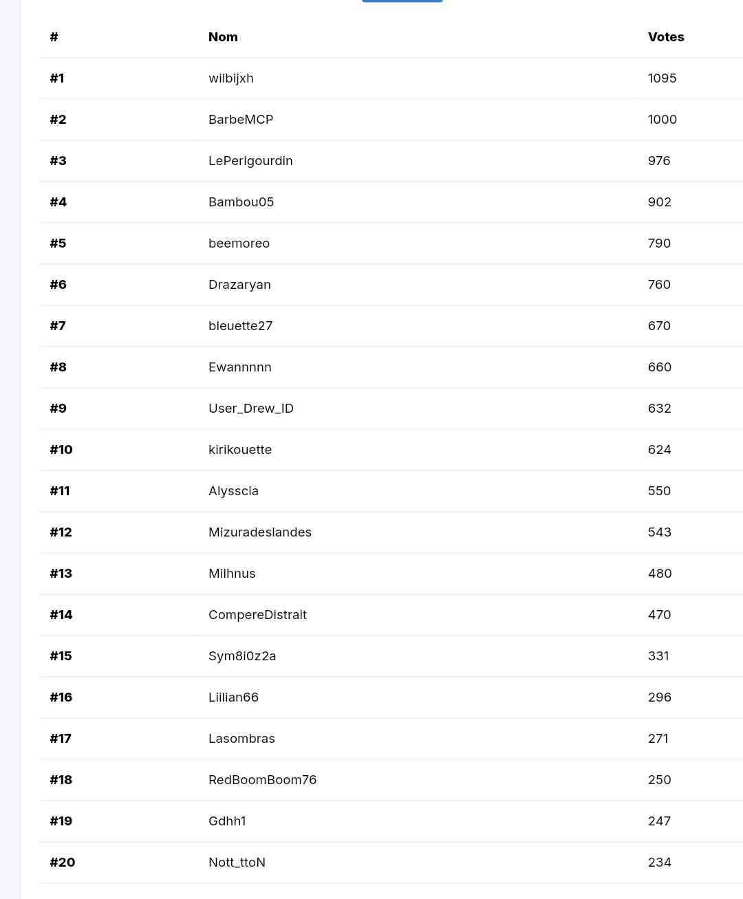 1er : wilbijxh > 1500 croquettes + 25 000 € + trophée de vote